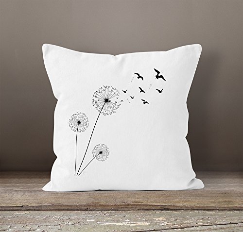 zauberhafter Kissenbezug mit filigranem Pusteblume und Vögel Motiv