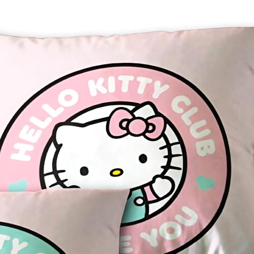 ✅ Beidseitiger Hello Kitty Fassung: Niedliches „Hello Kitty Club – Just Be You“-Design in zarten Pastellfarben – ideal denn Deko sondern Kinderzimmer, Bett oder Couch.