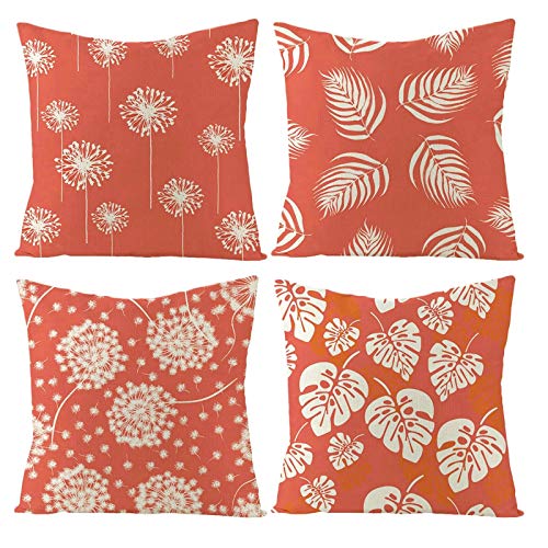 Ayoiow 4er Set Kissenbezüge 50x50cm, Leinen Couchkissen Bezug Kissenbezüge 20×20 Inch Couchkissen Bezug Kissenbezug Dekokissen Löwenzahn Monstera Blatt