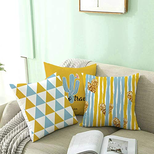 Ayoiow 4er Set Sofakissenbezug 50x50cm, Polyester Dekokissen Kissenhüllen 20×20 Inch Kissenüberzug Zierkissenbezüge Let’s Smile Smile Sunshine Fall in Love Triangle Dot