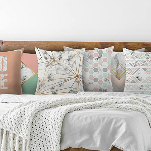 Ayoiow Couchkissen Bezüge 40x40cm, Zierkissenbezüge Kissenhülle Polyester Punkt Quadrat Kurven Marmor Muster Couchkissen Kissenbezüge Dekokissen 16×16 Inch