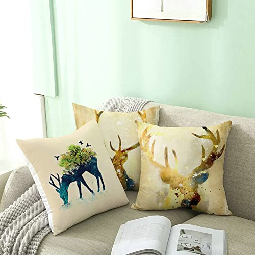 Ayoiow Sofakissen 45x45cm, Couchkissen Bezug Kissenbezug Polyester Geweih Kissenhüllen Couchkissen Dekokissen 18×18 Inch