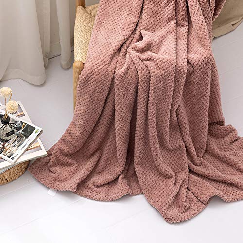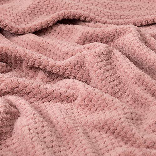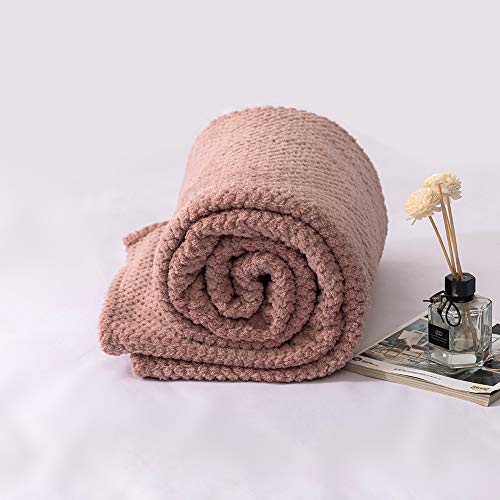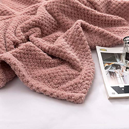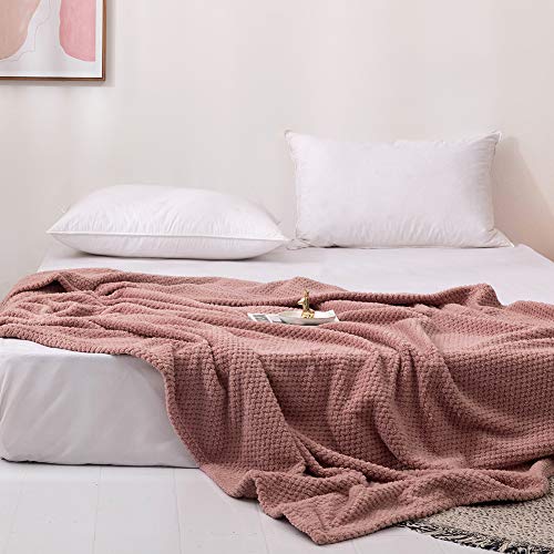 AYSW 240GSM Kuscheldecke Wohndecke 150x200cm hochwertige Flauschige Waffelpique Decke altes Rosa – weiche Microfaser Flanell Sofadecke