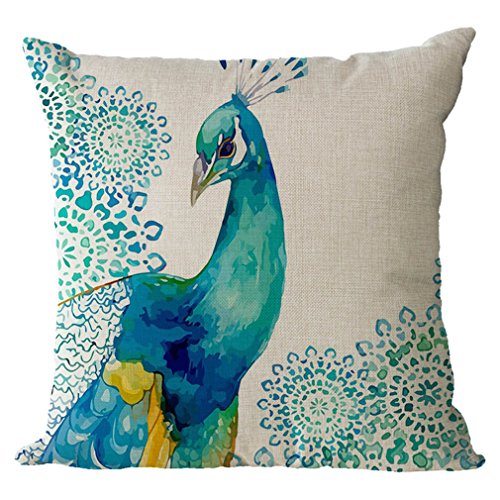 Baisheng Pfau Kissenbezug aus Baumwollleinen Home Schlafsofa Dekorative Platz Dekokissen Fall(1#-45 x 45cm/18 x 26 Inch