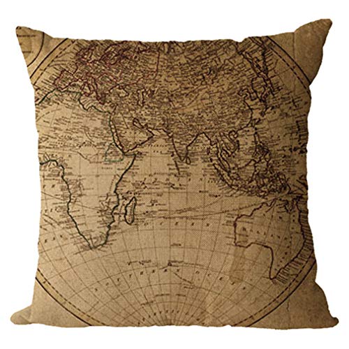 Baisheng Weltkarte Kissenbezug aus Baumwollleinen Home Schlafsofa Dekorative Platz Dekokissen Fall(2#-45 x 45cm/18 x 51 Inch