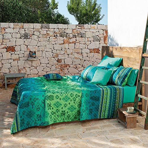 Die leicht gesteppte Decke kann qua Bettüberwurf, qua Ausschmückung, qua Sofaüberwurf oder qua Picknickdecke auftauchen.
