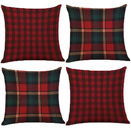 45,7 x 45,7 cm rot grün schwarz karierte Kissenbezüge 45 cm x 45 cm Set von 4 weichen Polyester-Kissenbezügen für Wohnzimmer, Sofa, Couch, Heimdekoration