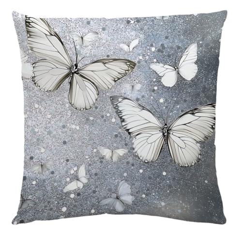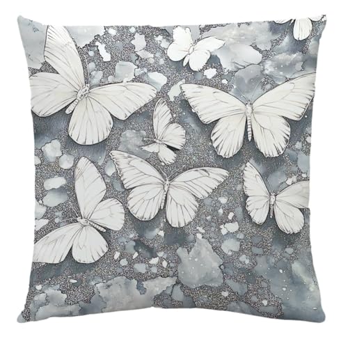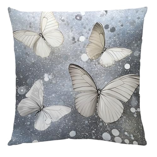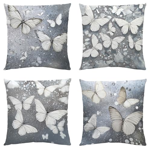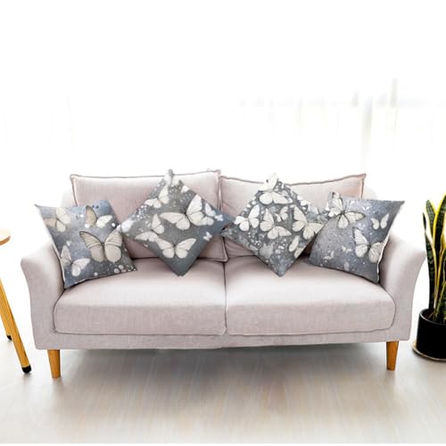 Kissenbezüge, 45 x 45 cm, 4 Teil, grauer Schmetterling, weiches Polyester, quadratisch, Dekokissen für Schlafzimmer, Wohnzimmer, Sofa, Couch, Bett