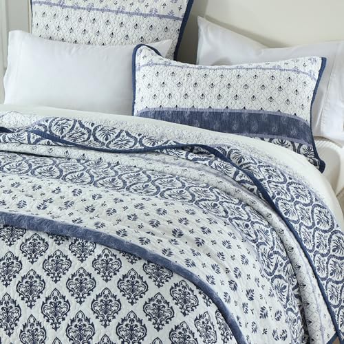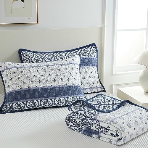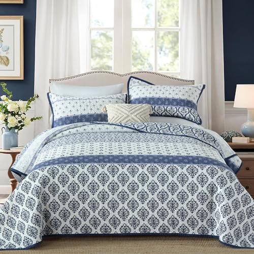 Steppdecken-Set, Queen-Size-Bettdecke, 100 % Baumwolle, Boho-Tagesdecke, Steppdecke, Mittelalter, blau, Queen-Size-Bettwäsche-Set, für alle Jahreszeiten, leichtes Bettwäsche-Set