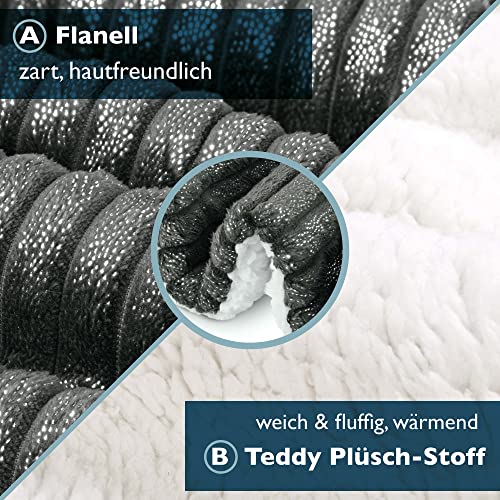 𝗪𝗔𝗦𝗖𝗛𝗕𝗔𝗥 𝗕𝗘𝗜 𝟯𝟬°𝗖 – Die dicke Decke kann wohltuend und schonend bei 30°C gewaschen werden. Zudem trocknet das Material der großen Teddyfleece Decke enorm schnell und einfach an der Luft.