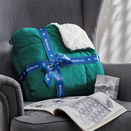 BEDSURE Kuscheldecke – Warm Sherpa Wolldecke & Sofadecke, Flauschig Sofaüberwurf Decke, Dicke Couchdecke, Fleecedecke, Flauschige Wohndecke für Couch, Dunkelgrün, 150×200 cm, XL
