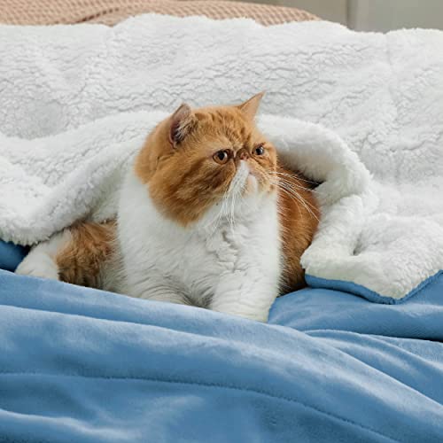 BEDSURE Kuscheldecke – Warm Sherpa Wolldecke & Sofadecke, Flauschig Sofaüberwurf Decke, Dicke Couchdecke, Fleecedecke, Flauschige Wohndecke für Couch, Hellblau, 150×200 cm, XL