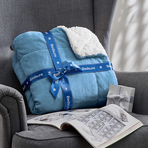 BEDSURE Kuscheldecke – Warm Sherpa Wolldecke & Sofadecke, Flauschig Sofaüberwurf Decke, Dicke Couchdecke, Fleecedecke, Flauschige Wohndecke für Couch, Hellblau, 220×240 cm, XXL