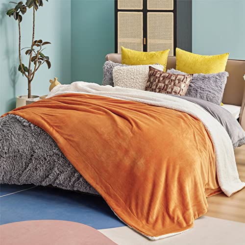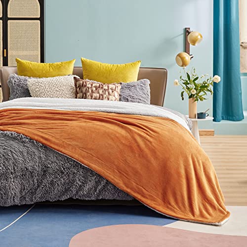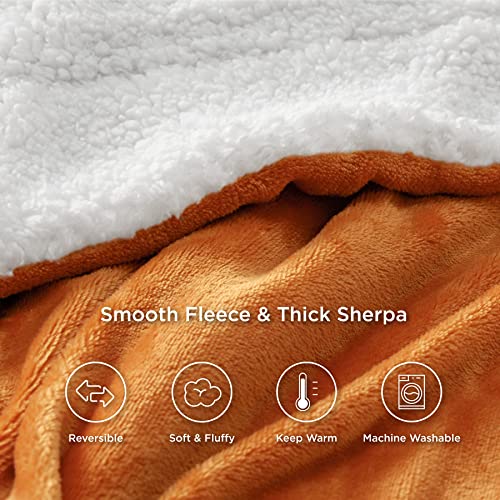BEDSURE Decke Sofa Kuscheldecke orange – warm Sherpa Sofaüberwurf Decke, Dicke Sofadecke Couchdecke, 150×200 cm XL Flauschige Wohndecke für Couch