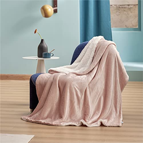 BEDSURE Kuscheldecke – Warm Sherpa Wolldecke & Sofadecke, Flauschig Sofaüberwurf Decke, Dicke Couchdecke, Fleecedecke, Flauschige Wohndecke für Couch, Grau Rosa, 150×200 cm, XL