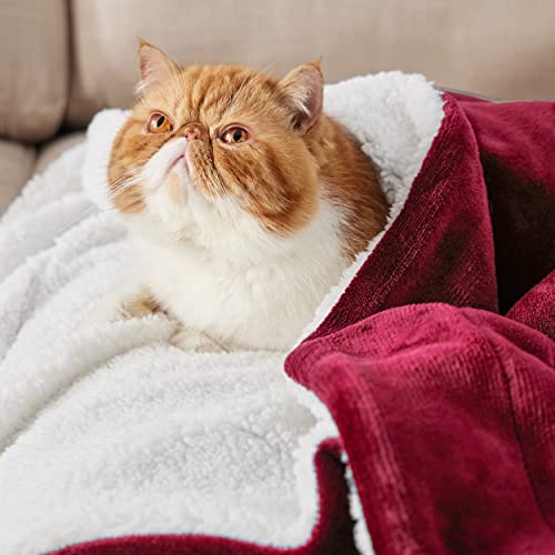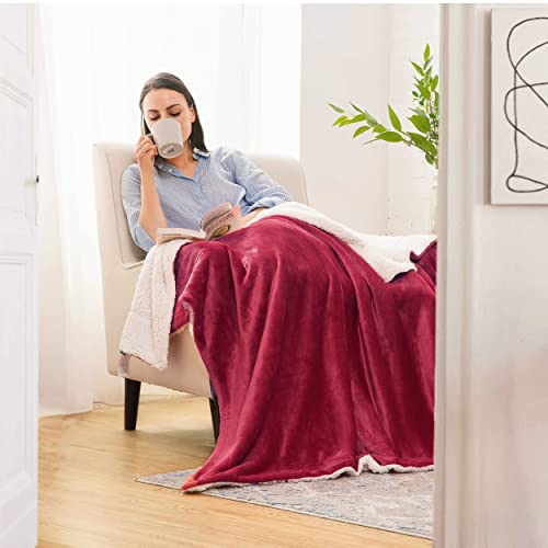 BEDSURE Kuscheldecke – Warm Sherpa Wolldecke & Sofadecke, Flauschig Sofaüberwurf Decke, Dicke Couchdecke, Fleecedecke, Flauschige Wohndecke für Couch, Rot, 150×200 cm, XL