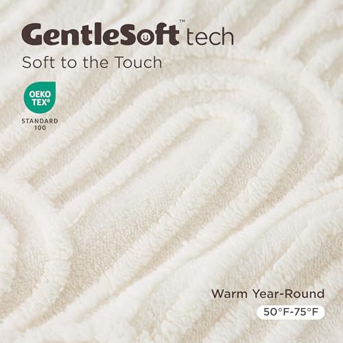Stilvolle und wendbare Weichheit: Diese doppelseitige Decke ist auf der einen Seite mit einer dicken Schicht Sherpa und auf der anderen Seite mit einem elegant gestalteten Jacquard-Muster versehen. Sie ist flauschig, plüschig und ultra-gemütlich für stilvollen Komfort das ganze Jahr über.