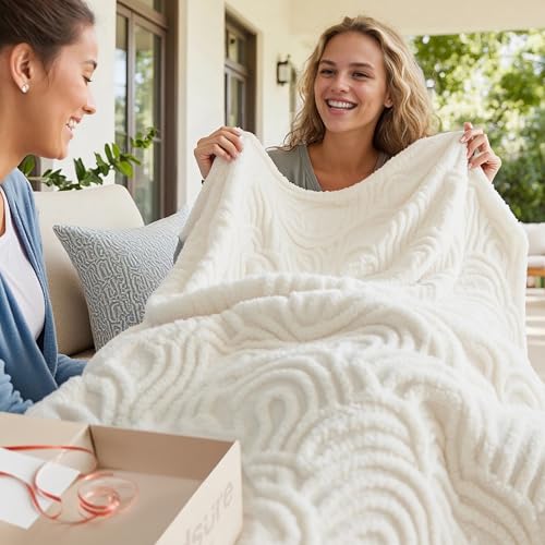 BEDSURE Kuscheldecke Decken für Sofa – Wohndecke, Couchdecke, Überwurf, weiche und warme Fleecedecke, gemütliche Korddecke, Kuscheldecke flauschig, Weiß Creme, 150 x 200 cm
