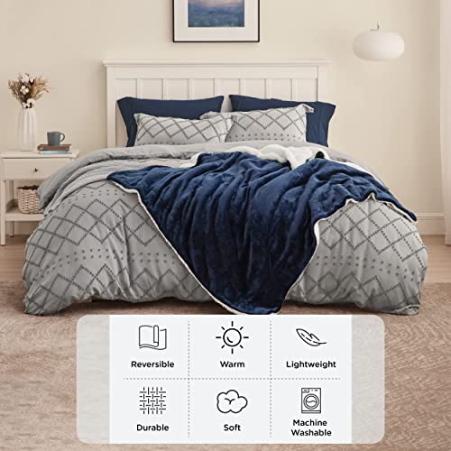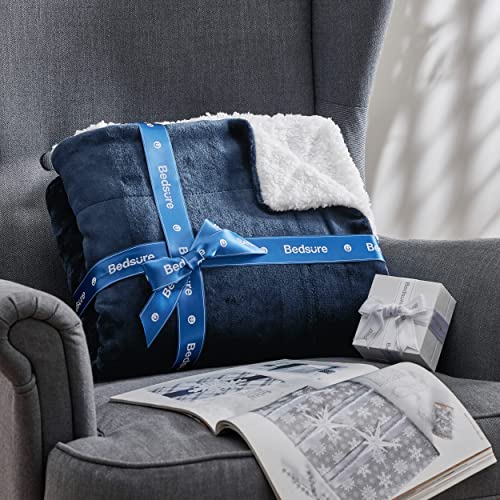 BEDSURE Kuscheldecke – Warm Sherpa Wolldecke & Sofadecke, Flauschig Sofaüberwurf Decke, Dicke Couchdecke, Fleecedecke, Flauschige Wohndecke für Couch, Marine Blau, 130×150 cm