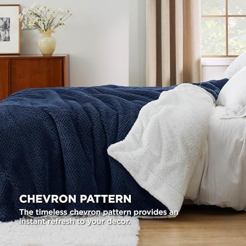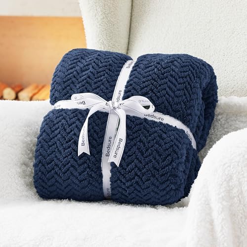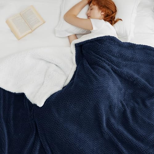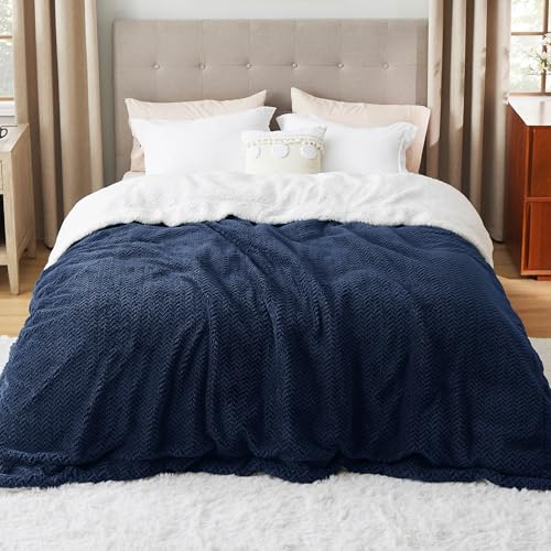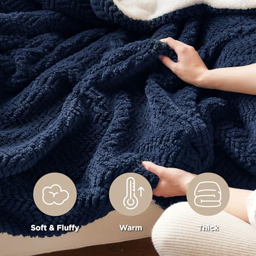 BEDSURE Sherpa Decke Marine Blau – Warme Dicke Kuscheldecke Flauschig, Sofadecke Couchdecke Winterdecke, Wohndecke 220×240 cm XXL Wohn- & Kuscheldecken