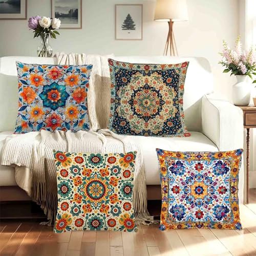 【DOUBLE-SIDED PATTERN】New cushion covers set of 4, size 32x32inches (80x80cm) without filling or lining. Our cushion covers are printed on both sides, so you can place them as you like without having to find the patterned side to decorate, which is more convenient