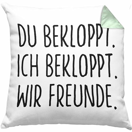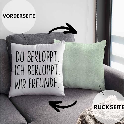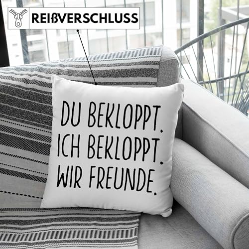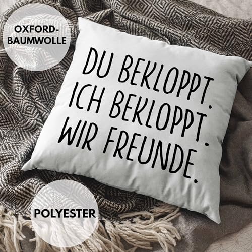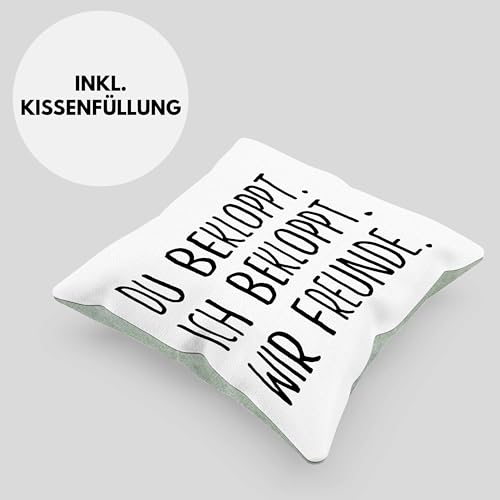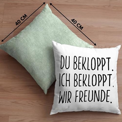 Du Bekloppt Ich Bekloppt Wir Freunde. Lustige Geschenkidee für beste Freundin oder Freund als Deko-Kissen mit Füllung mit Spruch als Geschenk zum Geburtstag oder Weihnachten.
