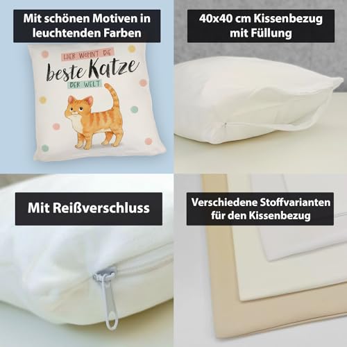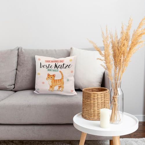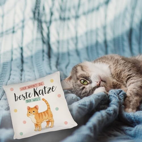 Lieferumfang: 1x Beste Katze der Welt Kissen mit oranger Katze Katze und Spruch