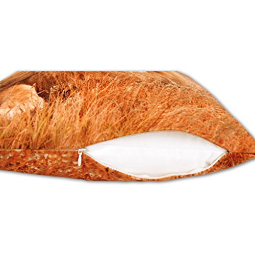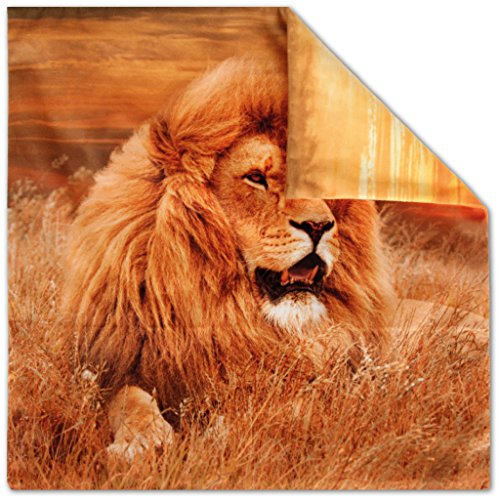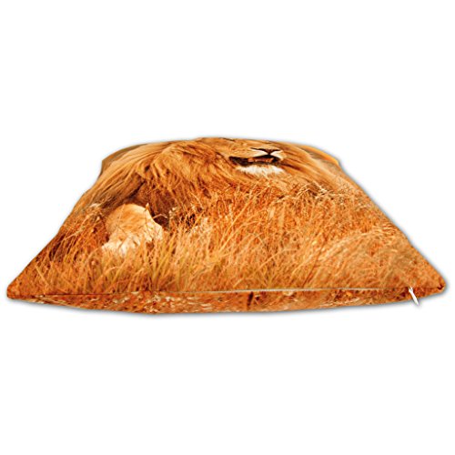 Lieferumfang: Ein Dekokissen in der Größe 40x40cm, Löwe Fotodruck auf der Vorderseite und bedruckter Abseite