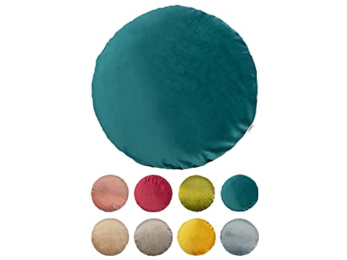 beties „Samt&Sonders Serie, Kissenhülle ca. Ø 40 cm in Petrol mit dekorativer Jeansnaht, aus deutschem Unternehmen in hochwertiger Qualität