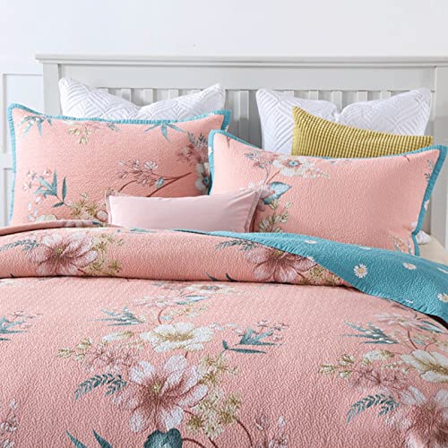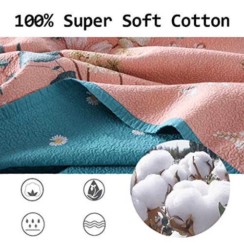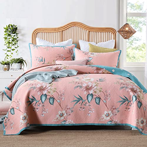 Bettdecken Doppelt Tagesdecke Reine Baumwolle Gesteppte Tagesdecken 3PCS Bettwäsche-Set Bettüberwurf 220X240cm, Blumendruck Klimaanlage Steppdecke Multifunktions Decke Mit 2 Kissenbezügen 50X70cm