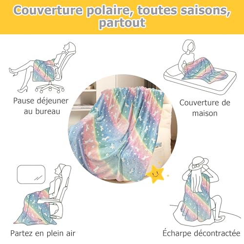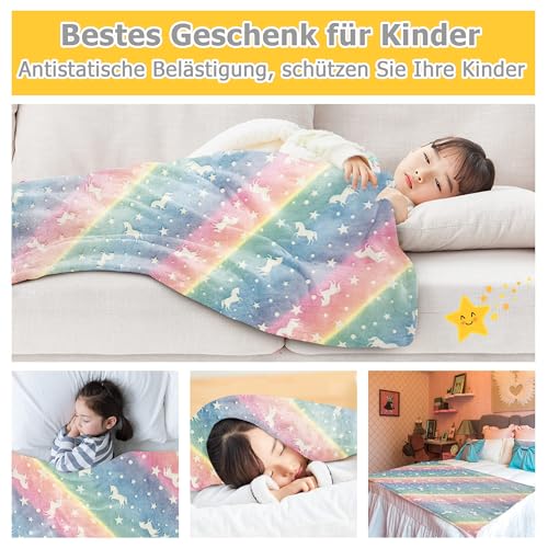 ✔️【Glow In The Dark】Unsere Einhorn-Decke kann im Dunkeln leuchten, geheimnisvoll und interessant. Sie müssen die Decke andererseits für eine Weile einem hellen Licht oder Tageslicht aussetzen, das Licht ausmachen und die Magie beobachten