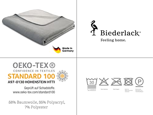biederlack® flauschig-weiche Kuscheldecke aus Baumwoll-Mischgewebe I Made in Germany I Öko-Tex I nachhaltig produziert I Wohndecke Cotton Doubleface in Graphit-Rauch I Sofa-Decke in 150×200 cm