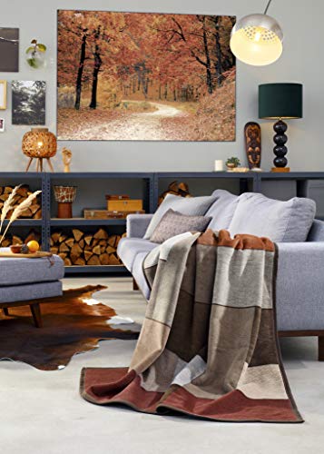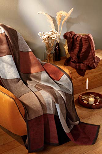biederlack® flauschig-weiche Kuscheldecke aus Baumwolle und Polyacryl I Made in Germany I Öko-Tex I nachhaltig produziert I Sofa-Decke Brown Squares in braun-beige kariert I Wohndecke 150×200 cm