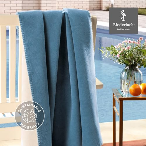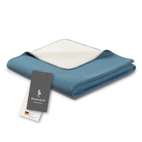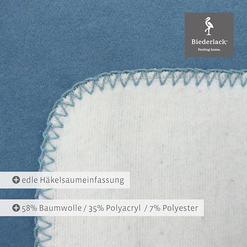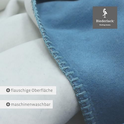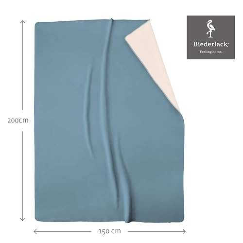 biederlack® flauschig-weiche Kuscheldecke aus Baumwollmischgewebe I Made in Germany I Öko-Tex I Wohndecke Cotton Doubleface in Hellblau-Ecru I nachhaltig produziert I Sofa-Decke in 150×200 cm