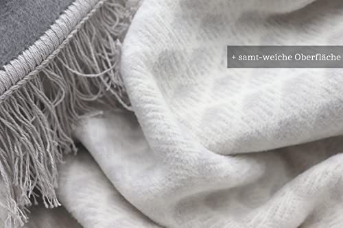 biederlack® Flauschige Kuscheldecke Daylight hellgrau I Made in Germany I Öko-Tex Made in Green I Fransen-Decke aus Baumwolle und Polyacryl I Wohndecke in 150×200 cm I Sofa-Decke mit Allover Design