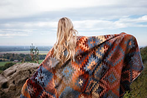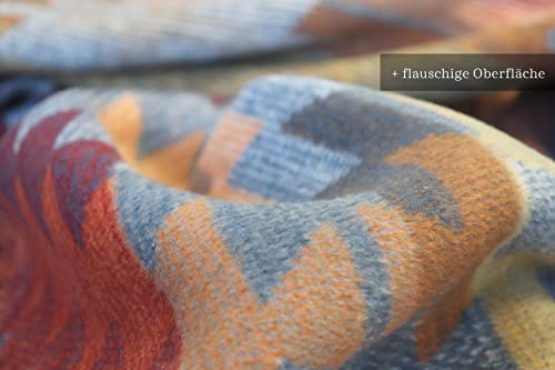 biederlack® Flauschige Kuschel-Decke ‚Navajo‘ I Ethno Wohndecke in blau-orange I Made in Germany I Bunte Sofa-Decke in 150×200 cm I nachhaltig produzierte Decke I Öko-Tex Made in Green