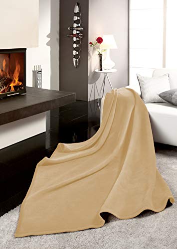 biederlack® Flauschige Kuscheldecke Pure Cotton I Made in Germany I Öko-Tex Made in Green I Wohndecke aus 100% Baumwolle in Beige I Couch-Decke 150×200 cm | nachhaltig produzierte Sofadecke