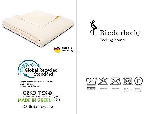 biederlack® Flauschige Kuscheldecke Pure Cotton I Made in Germany I Öko-Tex I Wohndecke aus 100% Baumwolle in Natur I Couch-Decke 150×200 cm | nachhaltig produziert