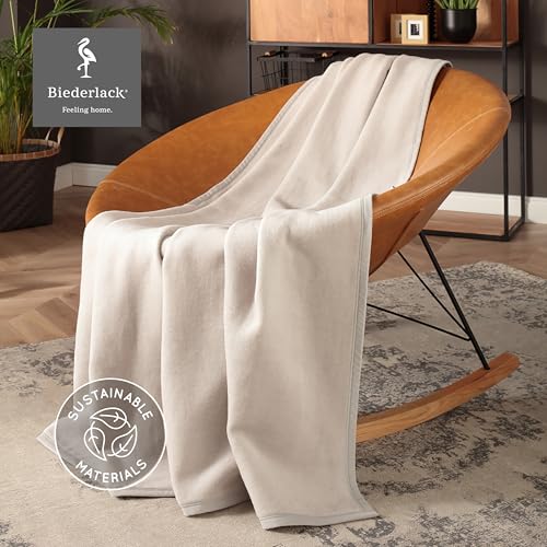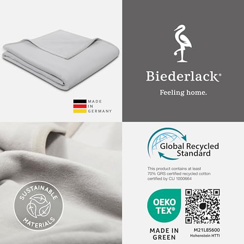 biederlack® Flauschige Kuscheldecke Pure Cotton I Made in Germany I Öko-Tex Made in Green I Wohndecke aus 100% Baumwolle in hellgrau I Couch-Decke 150×200 cm | nachhaltig produzierte Sofadecke