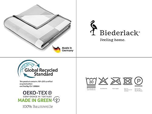 BESTES MATERIAL: Die Kuscheldecke aus 100% Baumwolle wird in Deutschland hergestellt. Für die Produktion werden nur nach höchsten Standards ausgewählte Garne verwendet. Lieferumfang: 1x Biederlack Sofadecke, 150×200 cm