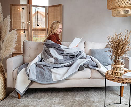 biederlack® Flauschige Kuscheldecke Pure Cotton Karo grau I Made in Germany I Öko-Tex Made in Green I grau Karierte Wohndecke aus 100% Baumwolle I Couch-Decke in 150×200 cm I nachhaltig produziert