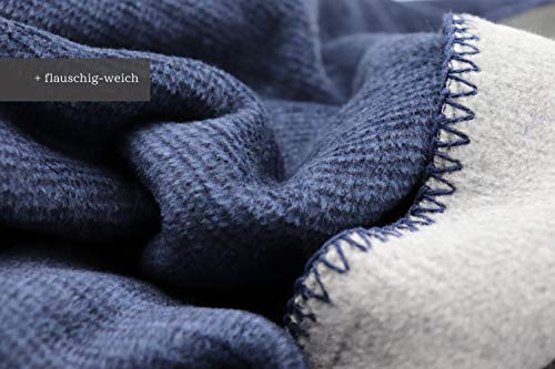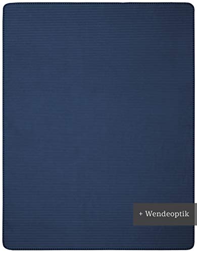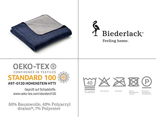 biederlack® samtig-weiche Kuscheldecke aus Baumwolle und Polyacryl I Made in Germany I Öko-Tex I nachhaltig produziert I Wohndecke Double Optic in Marine-Graphit I Sofa-Decke in 150×200 cm