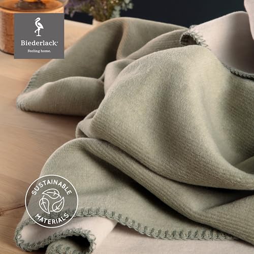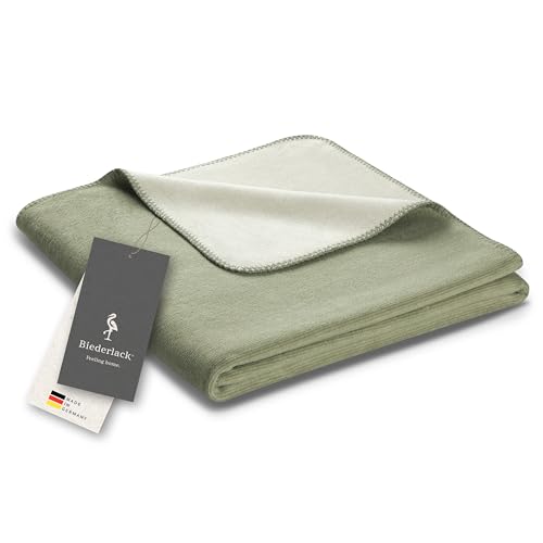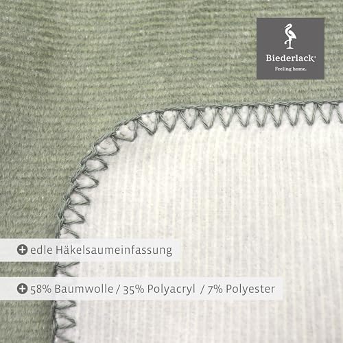 biederlack® samtig-weiche Kuscheldecke aus Baumwolle und Polyacryl I Made in Germany I Öko-Tex I nachhaltig produziert I Wohndecke Double Optic in Salbei-Natur I Sofa-Decke in 150×200 cm