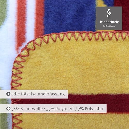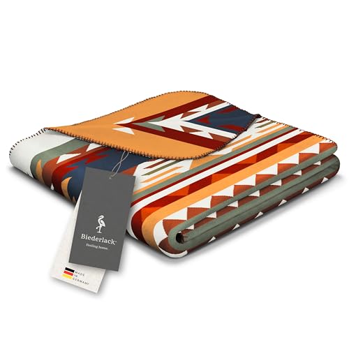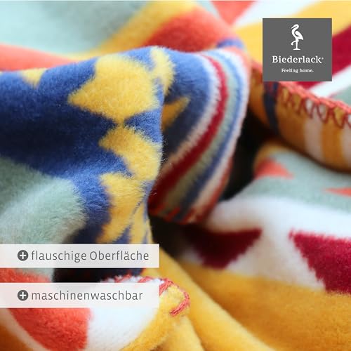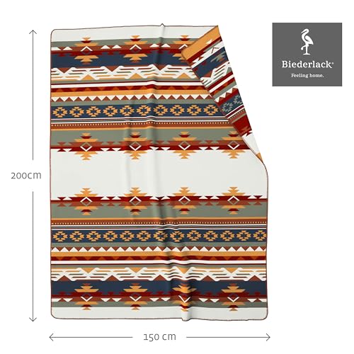 biederlack weiche Kuschel-Decke ‚Pueblo‘ I Ethno Wohndecke in blau-gelb-grün-Natur I Made in Germany I Bunte Sofa-Decke in 150×200 cm I nachhaltig produzierte Decke I Öko-Tex Made in Green