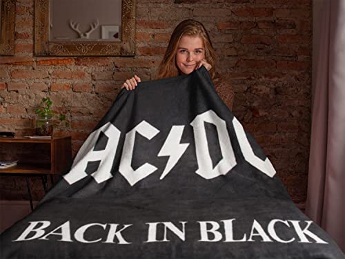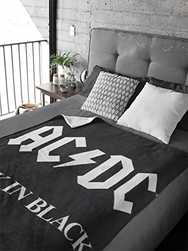 Großes Scrip-Design – Diese Decke hat ein Schriftdesign auf der Vorderseite des AC/DC-Logos und die Aufschrift „Back in Black“.