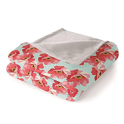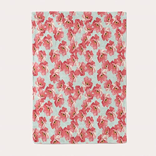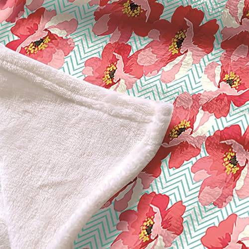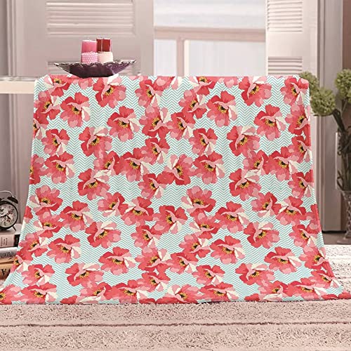 Blanket Retro, Fleecedecke Pink Flanell Blau Kuscheldecke Wellenlinie Blumendruck Flanelldecke 160x200CM Weich Wohndecke Sofa Bett Geschenk