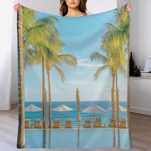 【Vielseitig einsetzbar】 – Die Fleecedecke Pool Palmenist der perfekter Begleiter für kuschelige Stunden alleine, zu zweit oder mit der Familie im Bett oder auf dem Sofa beim Fernsehen, Lesen oder Ähnlichem. Hingegen auch als Sofaüberwurf oder Reisedecke ist die Fleece Decke bestens geeignet. schafft eine warme und komfortable Atmosphäre.