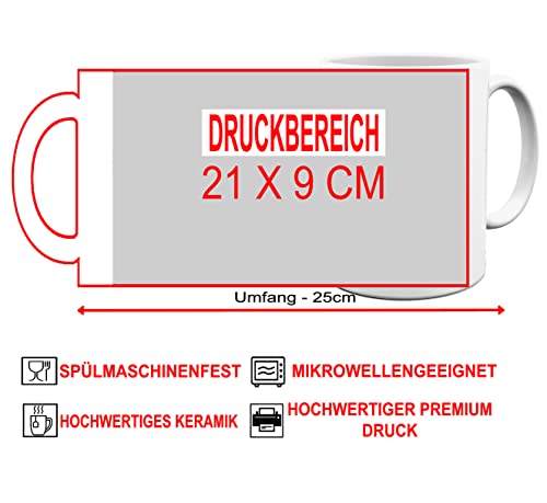 Sie erwerben hier eine ausgefallenere „Blickfang‘ Tasse. Sie wollen einen ganz besonderen Eyecatcher zum zum Geburtstag, als Geschenk für Ihren Kollegen als kleinen Spaß im Büro oder einfach für sich und den Liebsten für den Alltag. Dann sind Sie hier genau allumfassend! Produkt Details und Qualität Hochwertige Keramiktasse der Klasse A+ Güteklasse. Volumen ca. 330ml Höhe 95mm Durchmesser 83mm Hochwertiger Sublimationdruck Farben und Gestaltbarkeit Hier steht Ihnen eine große Auswahl zur Verfügung. Einzigartig, kein Problem. Gerne arrangieren wir jede Tasse individuell Unser Tassen Edition Diese Tasse ist mit hochwertigem Sublimationdruck hergestellt Dies rt eine hervorragende Licht- und Waschbeständigkeit Und ist sehr langlebig und zugleich unempfindlich. Sie erhalten sämtliche Tassen mit und ohne Bedruck. Waschempfehlung Das Produkt ist für die Handwäsche vorgesehen, wohl verträgt es, aufgrund der hohen Qualität der Beschichtung, eine Wäsche in der Geschirrspüler und behält das aufgedruckte Motiv über einige Dutzend Waschgänge sichern Sie sich die Farbechtheit und eine lange Haltbarkeit des „Blickfangs‘. Verfügbare Mengen Größere Mengen stellen für uns auch kein Hindernis dar Gerne drucken wir für Sie Großaufträge