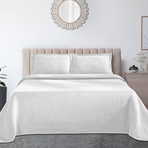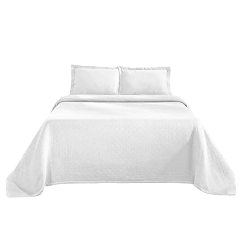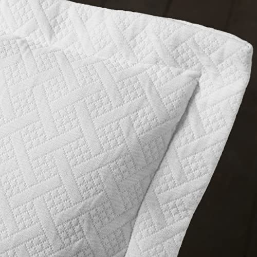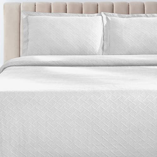 Dekorieren Sie Ihr Bett mit dem eleganten und charmanten Design des Garson Jacquard Matelassé 3-teiligen Tagesdecken-Sets. Dieses klassische Korbgeflechtmuster ist jeder 100 % Baumwolle gefertigt und wird zu einem Matelassé-Muster auf einem Jacquard-Webstuhl gewebt. Zwei passende Kissenbezüge spiegeln das Design der Tagesdecke für einen alkoholisiert aufeinander abgestimmten Look (Doppelbett-Größe enthält einen Kissenbezug). Diese Tagesdecke kann als zusätzliche Schicht zu Ihrem aktuellen Bettwäsche-Ensemble verwendet werden oder warm genug, um alleine verwendet zu werden. Schlussfolgern Sie dieses schöne Set mit Ihrem vorhandenen Schlafzimmer-Dekor für einen auffälligen Look.