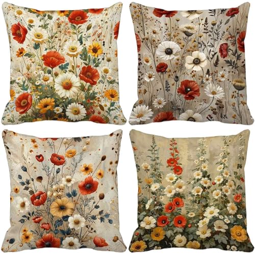 【Doppelseitiger Auflage】Das neue 4-teilige Kissenbezug-Set verfügt über doppelseitig gedruckte Muster, sodass Sie sie nach Belieben platzieren können, ohne die gemusterte Seite zum Dekorieren grasen zu müssen, was es praktischer macht
